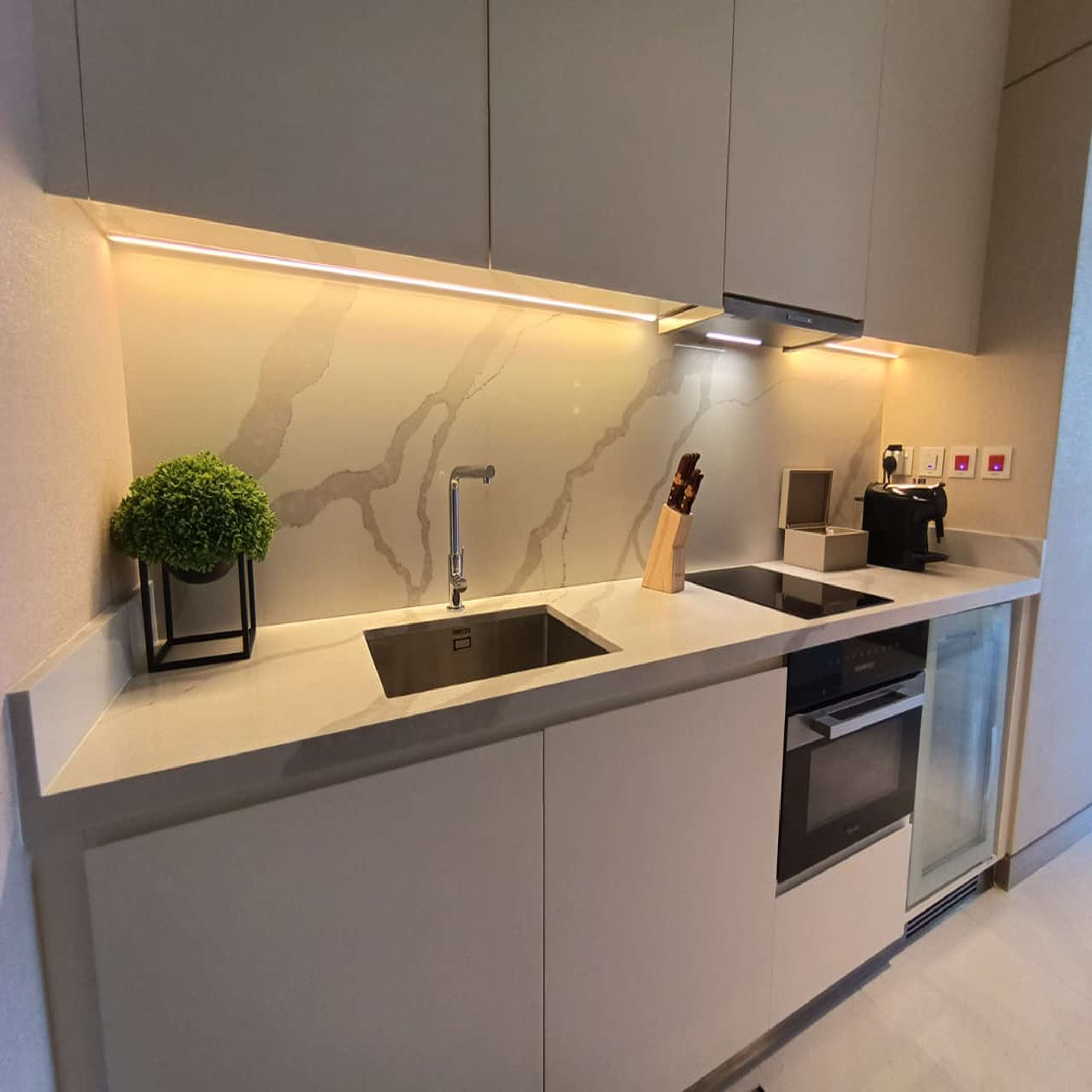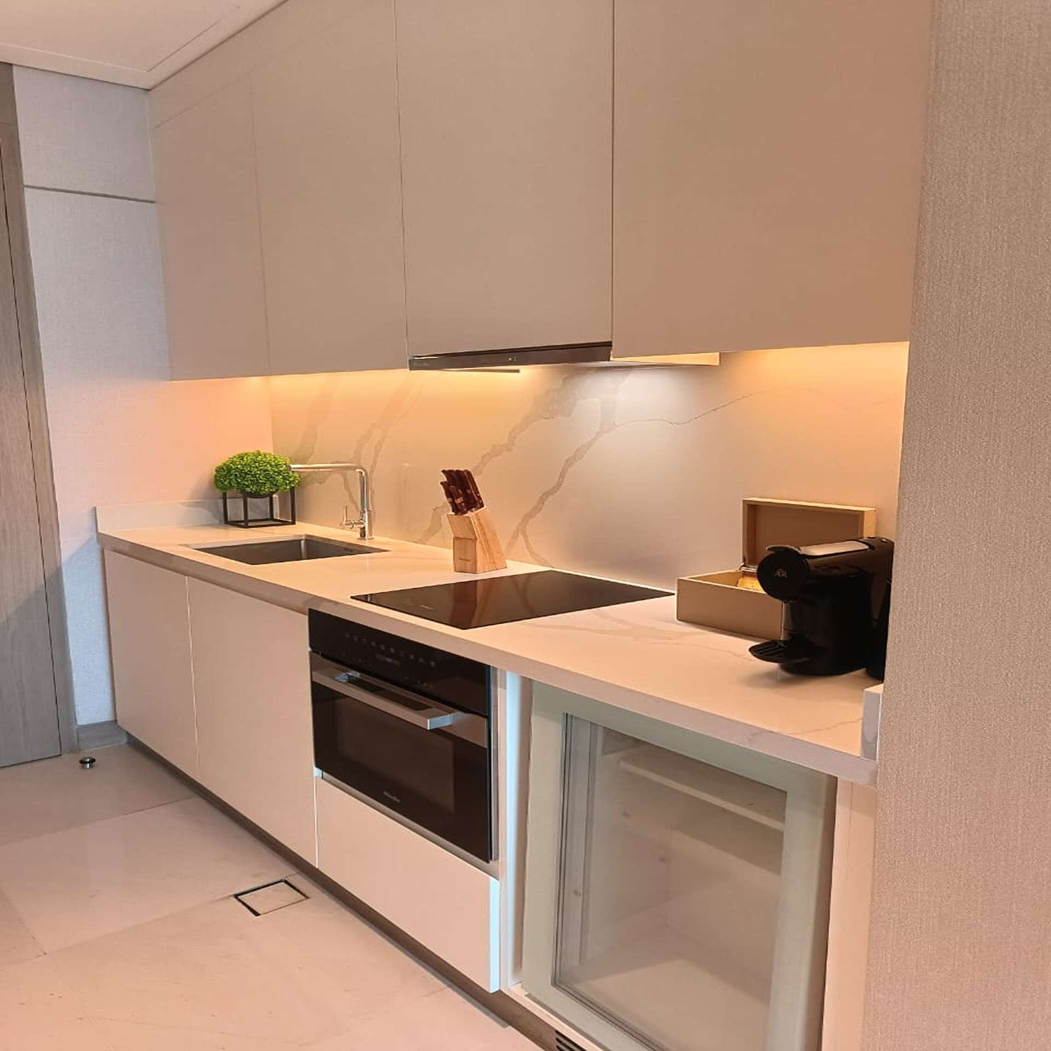 The studio in Dubai has capacity for 2 people. The studio is 66 m². The accommodation is equipped with the following items: washing machine, iron, internet (Wi-Fi), hair dryer, gym / fitness centre, air-conditioned, communal swimming pool, garage the same building, 1 TV. In the open plan kitchen, refrigerator, oven, dishes/cutlery, kitchen utensils, toaster and kettle are provided.